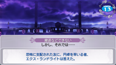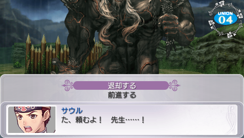 ゲームスタート。 MASTERモードで開始。 まずはプロローグイベントを適当に消化していく。 選択肢は稀にソウルゲージの増減があるが、基本的にどれを選んでもシナリオに変化は無い。 詳細はwki参照。 ・オル=オーマ 引きこもり魔王オーマさん。5ターン耐えればイベント進行。 ほぼ確実に死者が出るが特に問題は無い。 タイトルコール後キャラ作成。後々の変更は不可なので注意。 ステ振りは、とりあえず先生のみ「勇者の歌」用の神15を確保。 その後の先生と他キャラは、男性を体極。女性を体10→運極の予定。 ステータスは後ほどいくらでもドーピングできるので、さほど神経質になる必要は無い。 イベントのゴブリン戦を終えたらショートボウを購入。 宝飾品は売却用アイテムなので入手し次第売却してまわない。 宝石のみ別用途があるが、後ほどいくらでも手に入るので基本的には売って問題無い。 サウル加入のイベント戦が始まったらショートボウを装備。 先生は回復に手を取られることが多いので、武器はサウル優先で配備していく。 もう少し先に進むとエルサリアが加入。 3人になったらMAPを埋めつつスピアの購入資金を貯める。 帰宅にデメリットは無いので、エルサのMPが切れたら帰るの繰り返し。 先に進むとサイクロプスとの戦闘になる。 スピアを購入するまではマトモにダメージが入らないので、おとなしく退却が吉。 ・サイクロプス スピアを購入したらサイクロプス戦。 基本的にはサウルとエルサで攻撃し、先生で回復する形になる。 ・ムカブ そのままの流れでムカブを処理。 ウォースリングを持っていたのでロロンちゃんに配備。 帰宅後ロンドエールにてイベントを消化。 ちなみに言うほど肉が好物でもないので、与える餌はヨーグルト。 暫くの間食事はサウルへ注ぎ込んでいく。 ヨーグルト→ラーメンorとんかつ ・ムカブ(2) トラップポイントの制圧が終わったらサイクロプス&ムカブとの再戦。 後半のムカブは強くないので、2体目~3体目のサイクロプスにSP、MPを注ぎ込んで構わない。 ムカブ打倒後、拠点移動イベント。 武装指示が出るが、逆にメンバーの武器を外しておくとイベント戦が楽になる。 ・リッチ 騎士の絆でオーマの波動を防げばイベント終了。 この時点でのPTはこんな感じ。 PR |